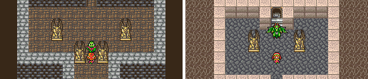 また、「モンスター」と「テオドール」のダンジョンが以前に騎士の訓練場として使われていたかどうかについては何とも言えないが、「コンスタンツ」のダンジョンにはタイプCの柱(戦士像に関わる柱)が設置されているので騎士の訓練場として使われていたと見て間違いないであろう。