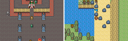 Bタイプの柱は他にもクリスタルレイクの洞窟内とメルビルの二つの神殿内(エロール神殿とウコム神殿)にもあるが、これらの柱は現生人類が新たに造ったり、アサシンギルドのダンジョンから移動されたものではなく、おそらく古代神時代からその場所にあったものだと思われる。
