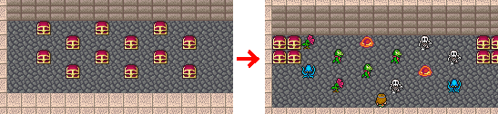 ・部屋の外から見ると宝箱だが部屋に侵入するとモンスターになる宝箱や、部屋に侵入すると見えるようになる宝箱