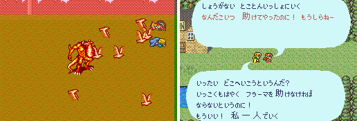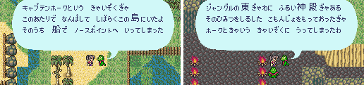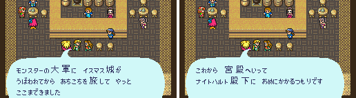 | 03 | 64 | (ダウドと盗賊稼業。) | ・モンスターに襲われているところをナイトハルトに助けられる。 →ナイトハルトに連れられてクリスタルシティを訪問。 →ナイトハルトをタラール村に案内する。 |
