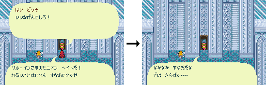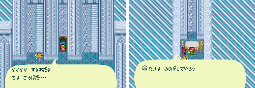 この問いかけに対して、「その通り!貴様こそ許さん!!」と答えれば、そのままフローズンボディとの戦闘に突入し、「そんな、滅相もない」と答えれば「そうか、では見逃して・・・・・・やるものか!!やれ!」と乗りツッコミ的な流れでフローズンボディとの戦闘に突入する。