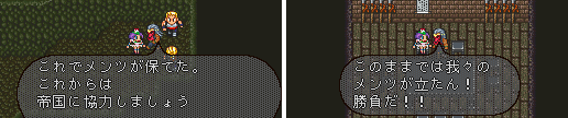 | テオドール 「君たちに先を越されてしまったか。情けない。」 ラファエル 「私が役に立たないばかりに・・。・・すみません。」 ハインリヒ 「君たちの働きは評価しているよ。しかし・・・・。」 テオドール 「もう帰ってくれたまえ。」→強制的に城外へ テオドール 「・・・・」 ハインリヒ 「・・・・」 ラファエル 「・・・・」 コンスタンツ 「・・・・」 |